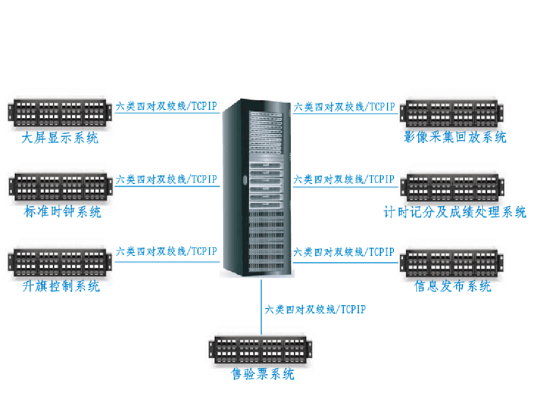 具有多種通信接口和支持多種通信協(xié)議,能方便、靈活地接入不同廠商、不同接口的系統(tǒng)和設備。可以將場館中具有開放接口的系統(tǒng)和設備直接集成到體育場館比賽設備集成系統(tǒng)中